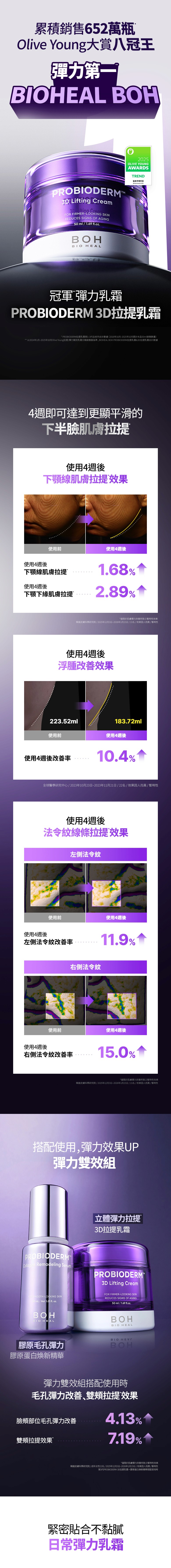 A. BIOHEAL BOH PROBIODERM3D拉提乳霜,能深入肌底帶來緊實彈力感,不僅提升拉提彈力,同時兼具保濕與光澤效果。而BIOHEAL BOH PROBIODERM膠原乳霜,為輕盈清爽的凝膠乳霜質地,能填補鬆弛毛孔中的膠原蛋白,幫助打造細緻平滑肌膚紋理。